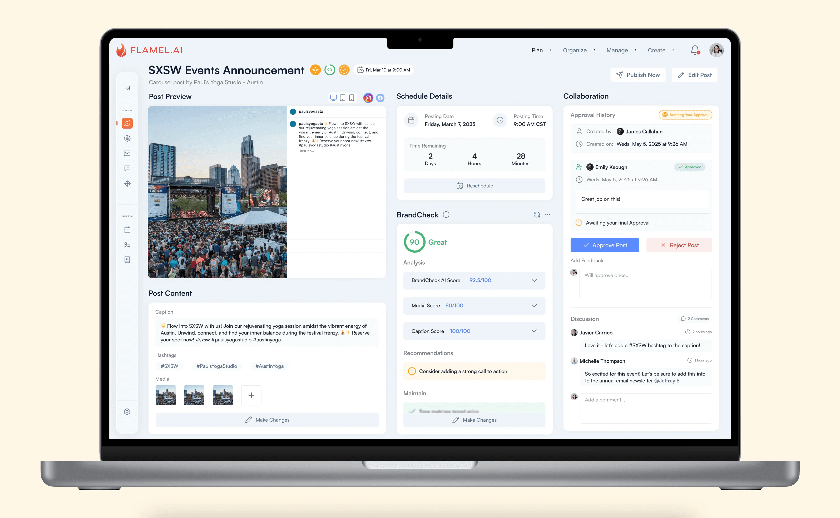"Flamel.ai's ability to schedule content across multiple platforms has been a major time-saver for us. It simplifies our social media strategy and brings everything under one umbrella, making our workflow much more efficient."